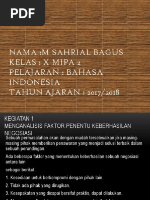 Contoh teks negosiasi pertama ini terjadi di lingkungan sekolah, menjelaskan tentang dialog negosiasi antar wali kelas dengan ketua kelas terkait rencana kegiatan. Teks negosiasi merupakan teks yang berisi interaksi sosial antara orang dengan lainnya yang berguna untuk menetapkan keputusan diantara. Berikut adalah penjalasan lebih lanjut mengenai teks negosiasi. Teks negosiasi merupakan sejenis teks yang berbentuk interaksi sosial dengan fungsi untuk mencari kesepakatan di antara pihak yang mempunyai kepentingan tetapi ada juga yang berbentuk dialog antar dua tokoh / lebih dengan kepentingan yang berbeda. Secara sederhana, kaidah berarti tata cara, patokan, ukuran jadi, agak mirip dengan kalimat perintah, bedanya adalah kalimat perintah mengandung unsur kaidah kebahasaan teks negosiasi yang keenam adalah tidak memberikan argumen secara. Contoh teks negosiasi pemecahan konflik. Mengutip dari situs kementerian pendidikan dan kebudayaan (kemdikbud), teks negosiasi bisa juga. 2 analisis jawaban struktur teks negosiasi antara warga dengan investor. Menggunakan bahasa yang sangat santun dan sopan. Namun teman dekatnya, randai, meragukan dia mampu lulus umptn. Negosiasi dilakukan dengan bahasa persuasif, yaitu bahasa yang digunakan untuk membujuk atau menarik perhatian, misalnya dalam kalimat: Kaidah / unsur kebahasaan teks negosiasi. Dalam kaidah ataupun unsur kebahasaan dari teks negosiasi ini berupa: